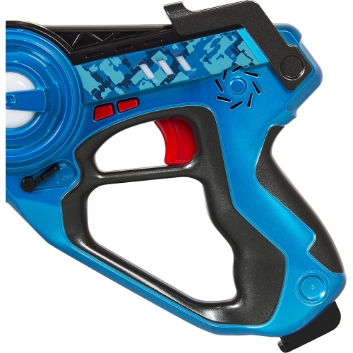 Jucătorii câștigă puncte lovind un alt jucător cu un dispozitiv LED cu infraroșu.