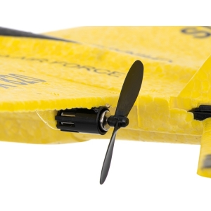 Avion ultraușor cu sarcină controlată din polistiren de culoare galbenă.