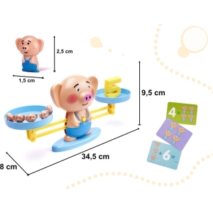 Jucăria îl ajută pe copil să înțeleagă ce înseamnă greutatea și echilibrul, îl învață operațiunile matematice de bază și dezvoltă gândirea logică, totul ca parte a distracției!