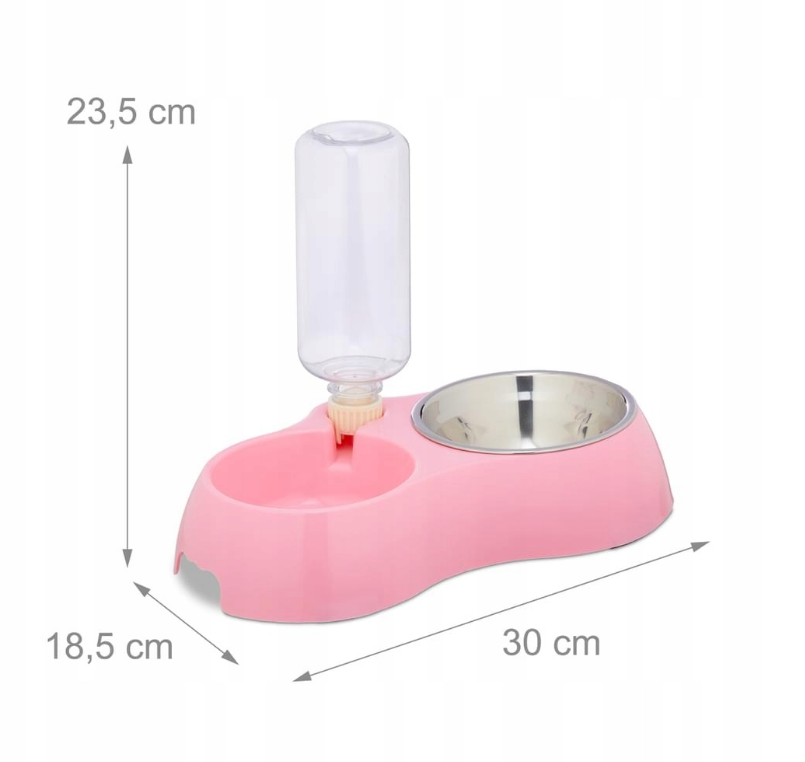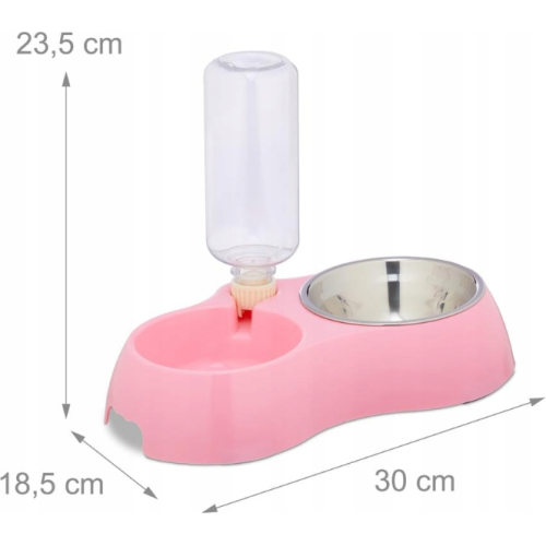 Bolul pentru mâncare oferă proviziile de bază perfecte pentru prietenul tău cu patru picioare. Puteți folosi un bol detașabil din oțel inoxidabil pentru alimente umede sau uscate. Sticla de băut asigură o aprovizionare constantă cu apă. Pune sticla umpluta cu capul in jos in suport, apa curge in vasul cu apa si ramane la o inaltime constanta. Datorită dimensiunii sale, castronul este perfect pentru câinii mai mici, dar și pentru pisici.