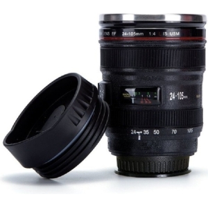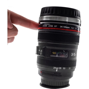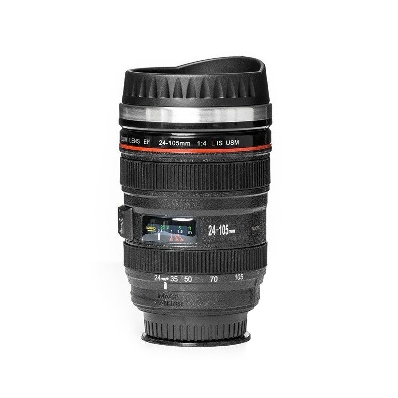 Cana de cafea cu model obiectiv foto este o replica a obiectivului Canon EF 24-105 mm f/4L IS USM, cu o capacitate de 350 ml cand este plina.
