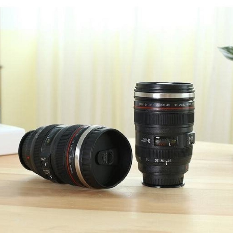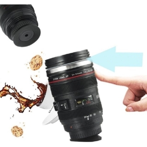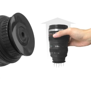 Cana in forma de obiectiv foto, antigravitatie cu interior din otel inoxidabil, protectie termica, 350 ml, Gonga®