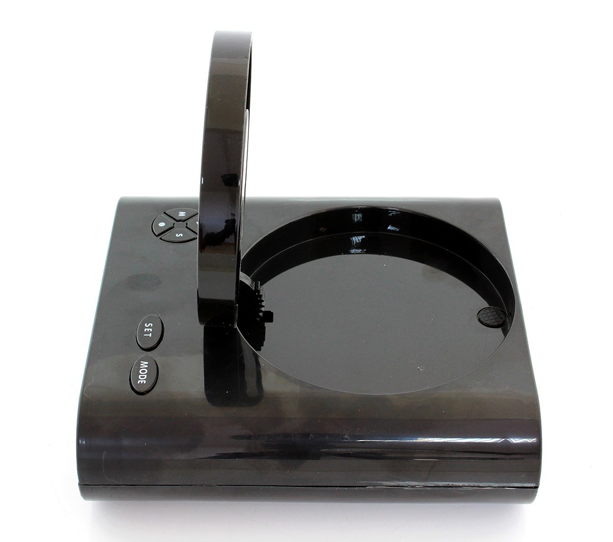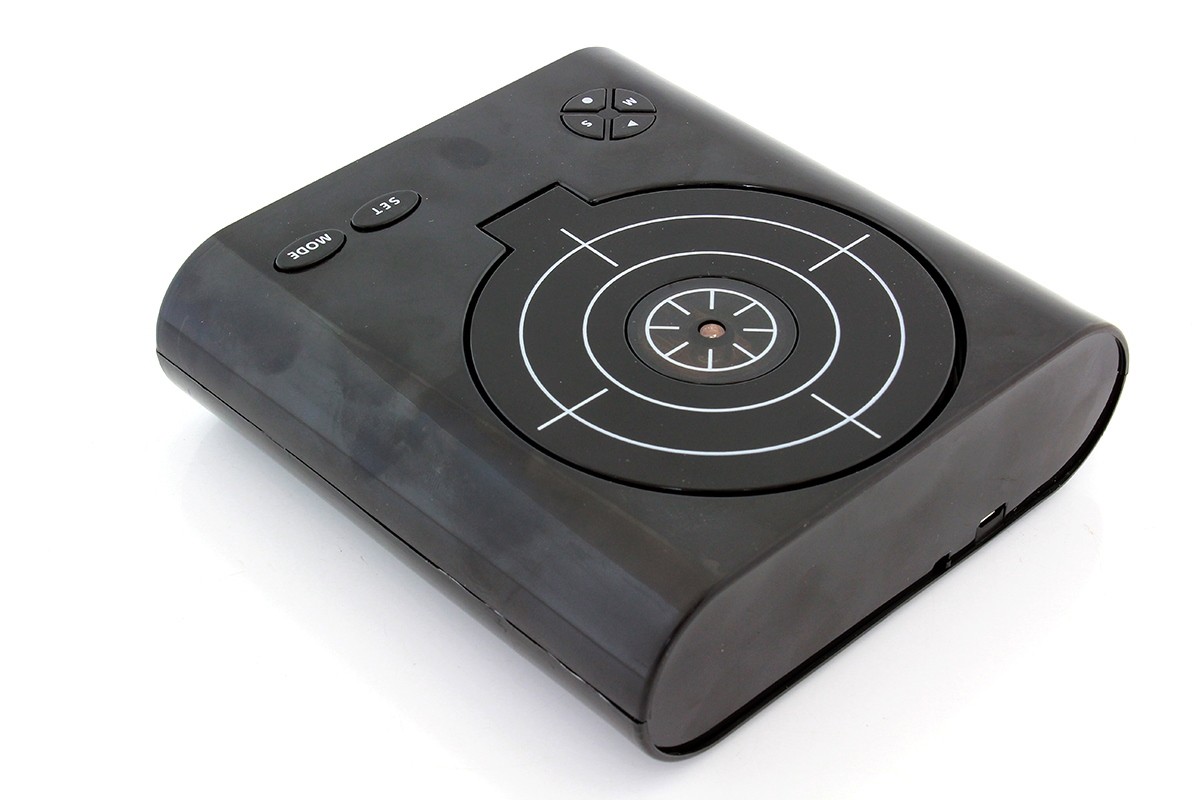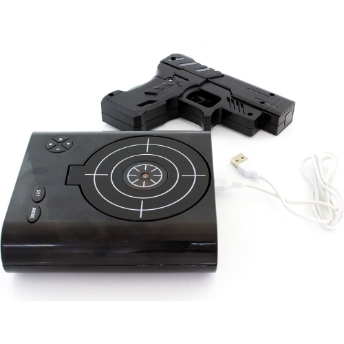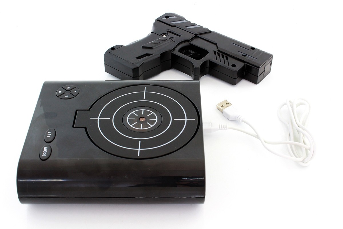 Are un design inedit pentru un ceas desteptator. Cand suna alarma, tinta se ridica si aceasta poate fi oprita numai daca indreptati pistolul in directia tintei.