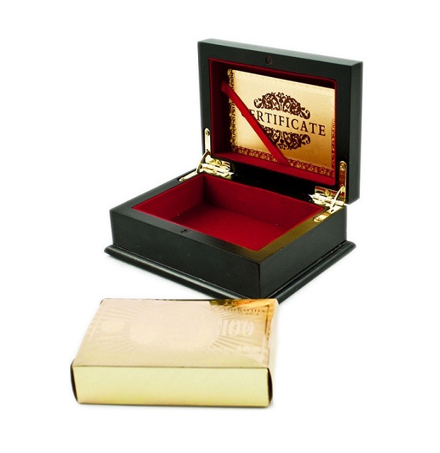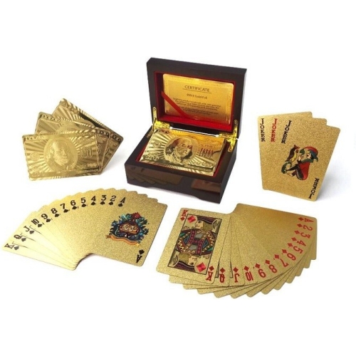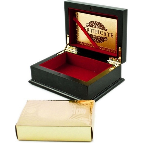 Cutie cu carti de joc aurii cu model dolar vor face ca jocurile tale de carti sa nu mai fie niciodata plictisitoare.