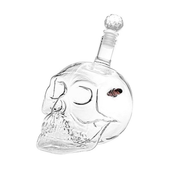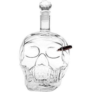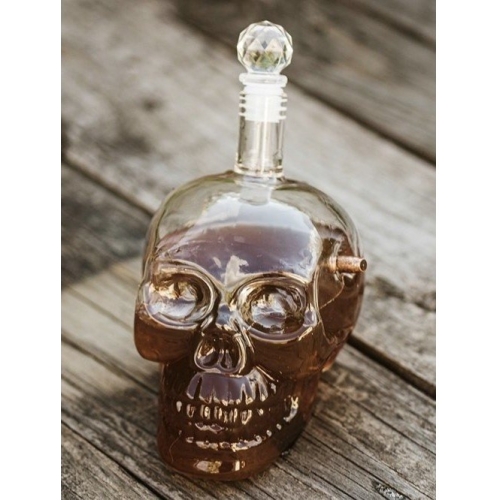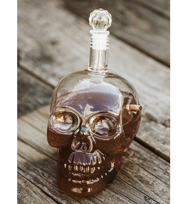Decantor din sticla in forma de craniu, perfect pentru petreceri.
