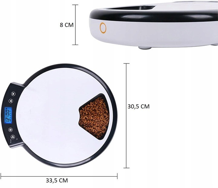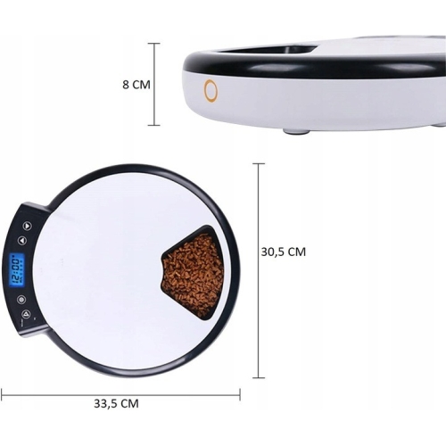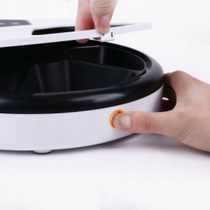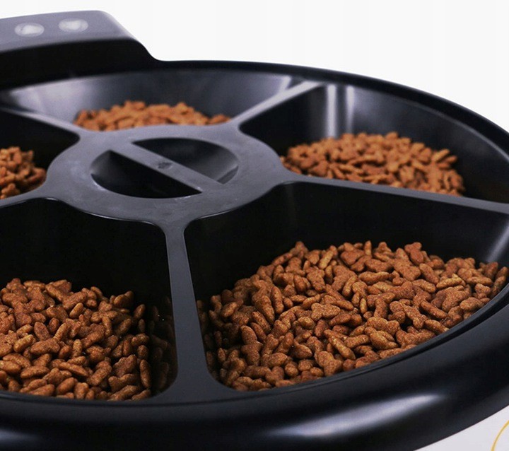 Distribuitorul este conceput pentru hranirea alimentelor uscate si umede. Un castron in forma de farfurie cu cinci locuri separate pentru mancare, care va permite sa plasati portii in functie de nevoile dvs.
