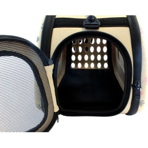 Geantă de transport de înaltă calitate pentru animalele de companie mici. Perfect pentru a ne muta pisica sau iepurele la orice distanță. Designul extrem de confortabil va asigura confortul atât pentru noi, cât și pentru animal. Materialul puternic din care au fost confecționate transportoarele, un mâner solid și o curea de umăr reglabilă asigură o utilizare lungă și fără probleme a produsului. Geanta este respirabilă și sigură pentru animalul nostru de companie datorită sistemului de ventilație. Confortul de utilizare este, de asemenea, asigurat de un fermoar dublu pe ambele părți ale suportului.