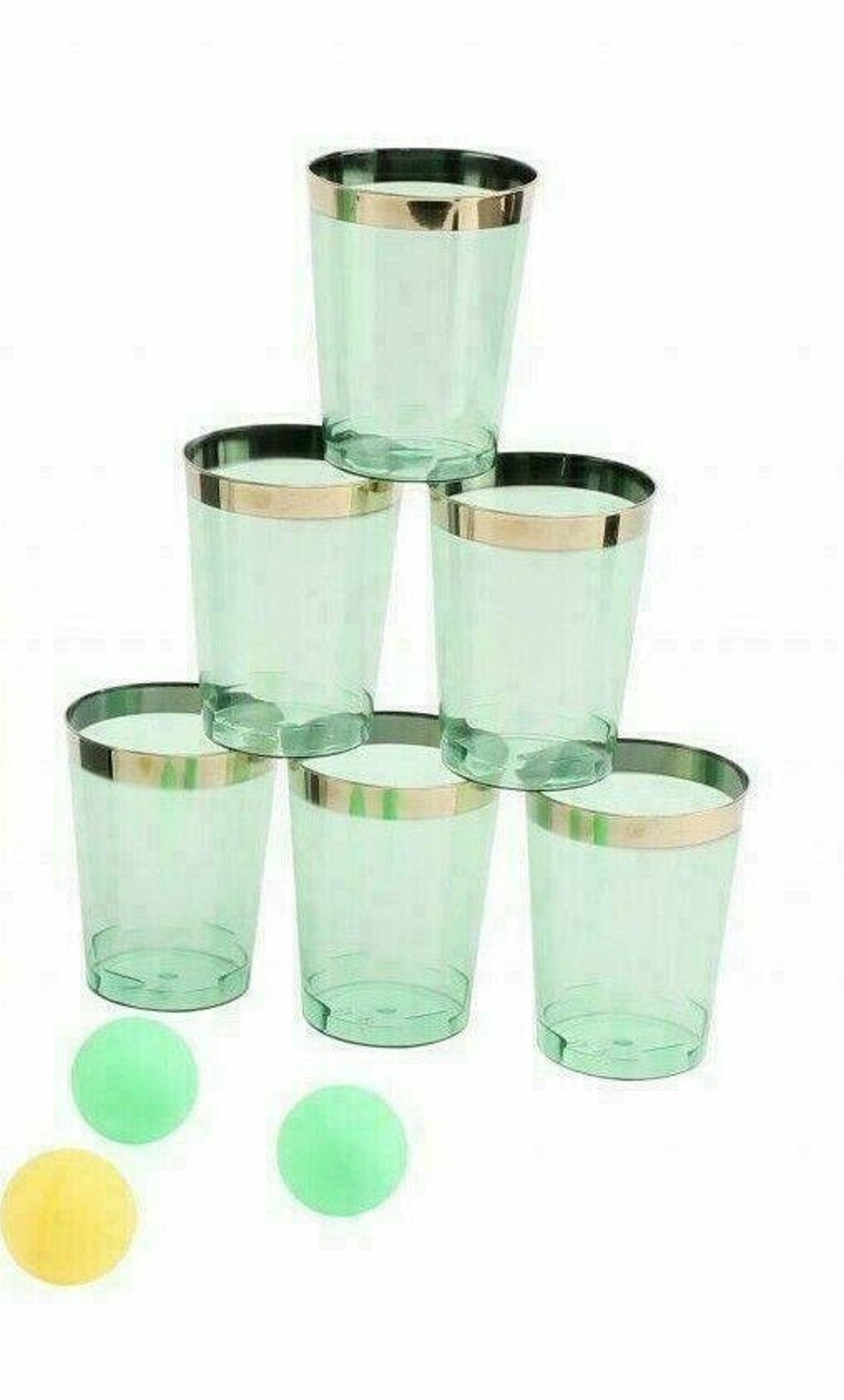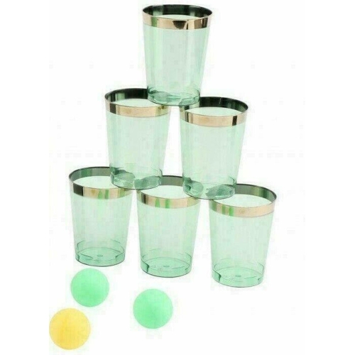 Setul Joc de baut gin, Gin Fling, contine 16 piese, 12 pahare (200 ml) de shot si 4 mingi de ping-pong.