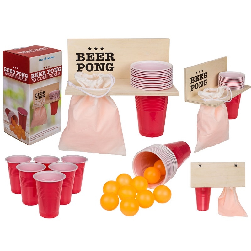 Setul de joc este format din 12 căni de bere din plastic și 12 bile, un saculet pentru bile și un raf pentru montare pe perete.