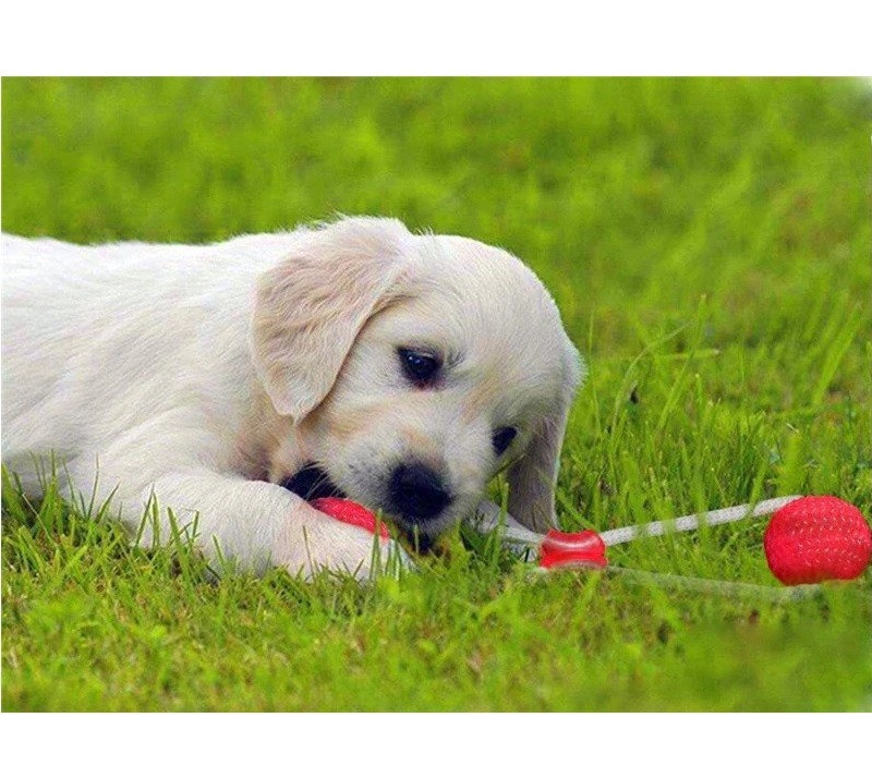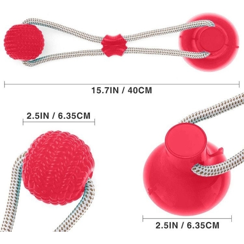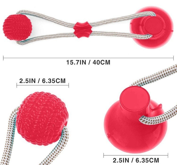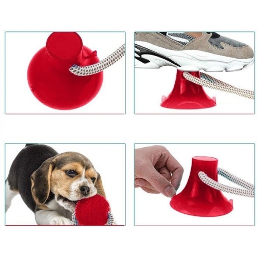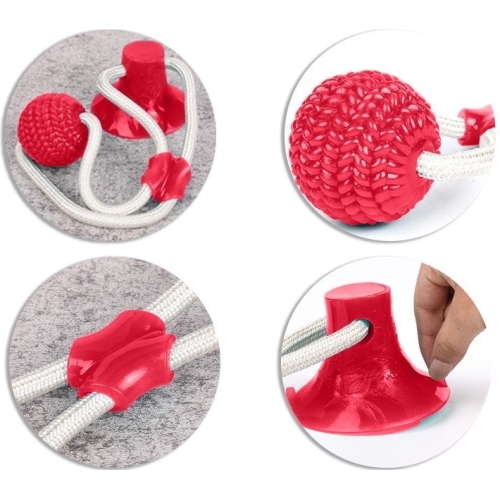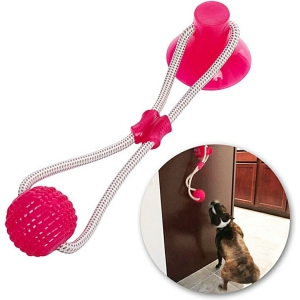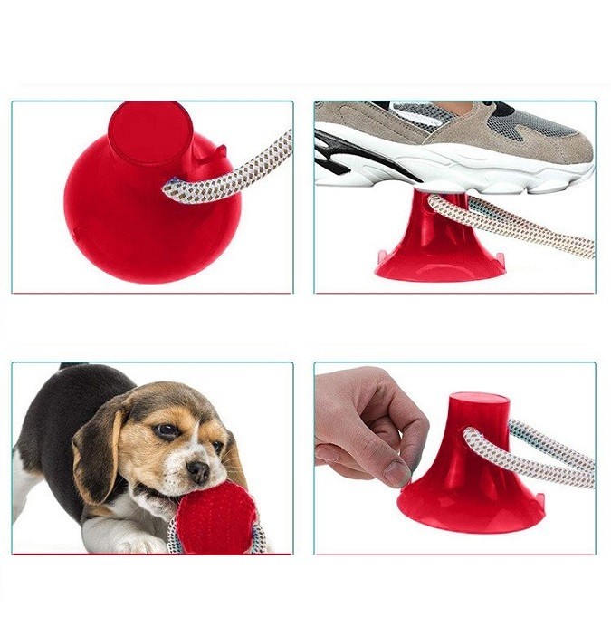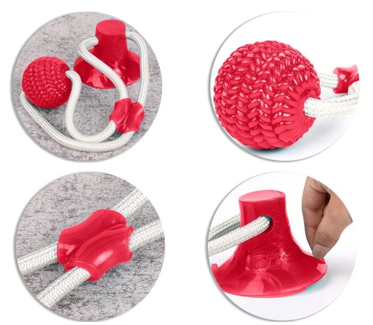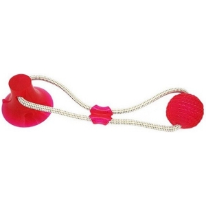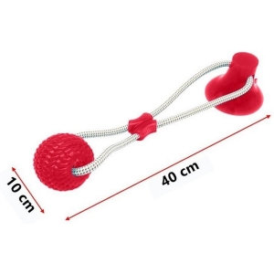 Aceasta jucarie interactiva are un design unic, ce va atrage catelul la joaca. Este prevazuta cu o ventuza la un capat, ce trebuie pozitionata pe o suprafata, cum ar fi pe podea. La celalat capat al jucariei se afla o minge din silicon. Cele doua componente sunt legate intre ele cu ajutorul unei franghii foarte rezistente. Catelul va incerca sa traga de minge, insa ventuza il va tine pe loc.