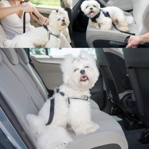 Lesa centura de siguranta auto pentru animale de companie, ce ii poate asigura siguranta animalutului in timp ce circulati cu masina.