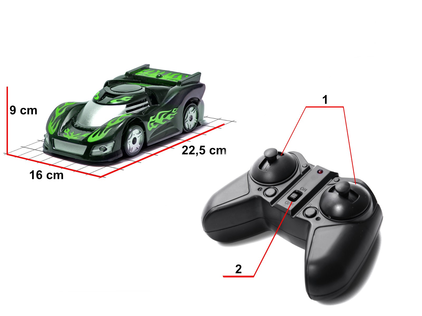 2 moduri de conducere: podea si pereti, schimbati cu un singur comutator pe spatele masinii; acelasi comutator va opri vehiculul