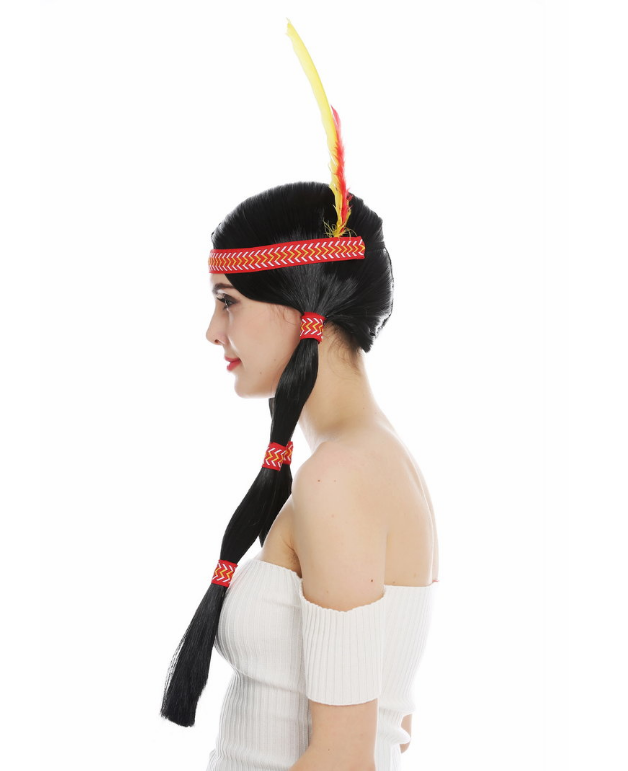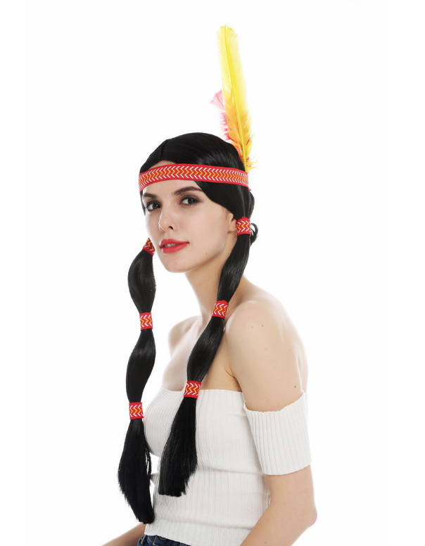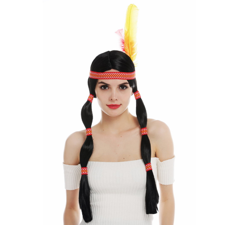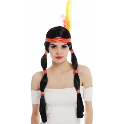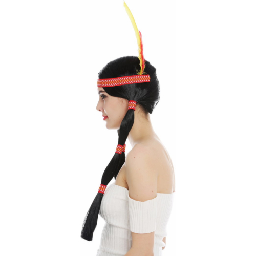 Peruca model indian cu pana pentru Halloween, negru, Gonga®