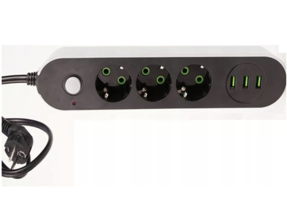 Priză de încredere, datorită căreia putem avea 6 dispozitive conectate în același timp. Trei dispozitive sunt conectate cu prize de curent standard, cele trei suplimentare cu porturi USB, care ajustează automat intensitatea curentului la dispozitivul conectat până la 3,4A.