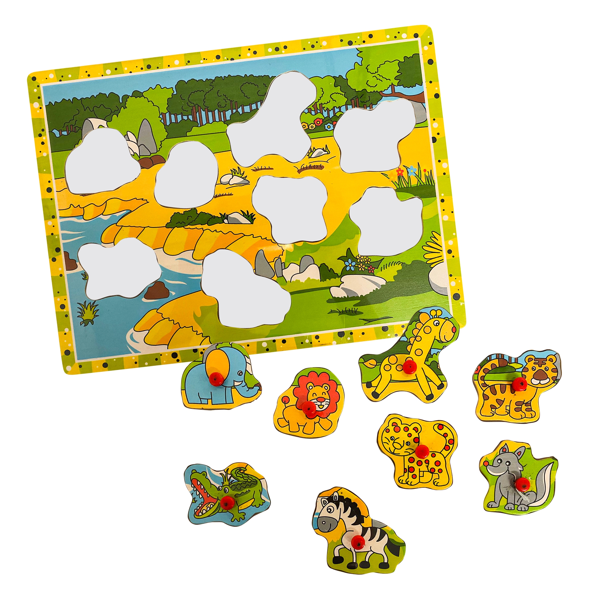 Puzzle din lemn cu animale din jungla, 8 piese, Gonga®
