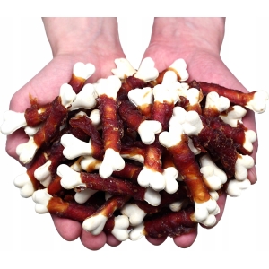 Recompense pentru câini – Oase cu calciu învelite în rață, 500g