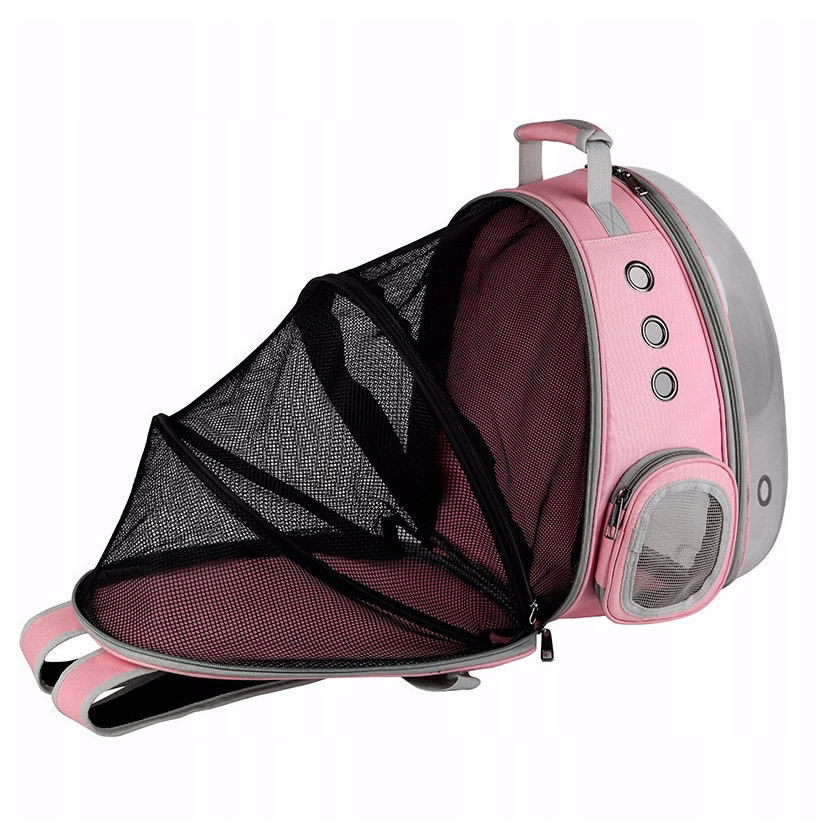 Cu un design fereastra complet transparenta ofera o vedere minunata pentru animalele de companie. S-ar putea sa le fie putin frica, dar odata ce se vor obisnui vor fi mai curioase despre lumea exterioara. Carcasa transparenta le ofera un sentiment de siguranta si confort. Un plus este si panza care se mareste in partea posterioara prin deschiderea unui fermoar, oferind astfel mai mult spatiu animalutului atunci cand ghiozdanul este la sol.