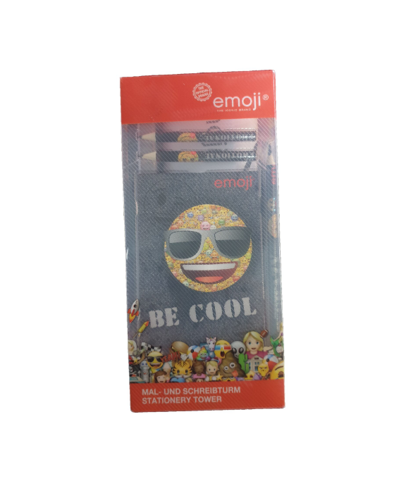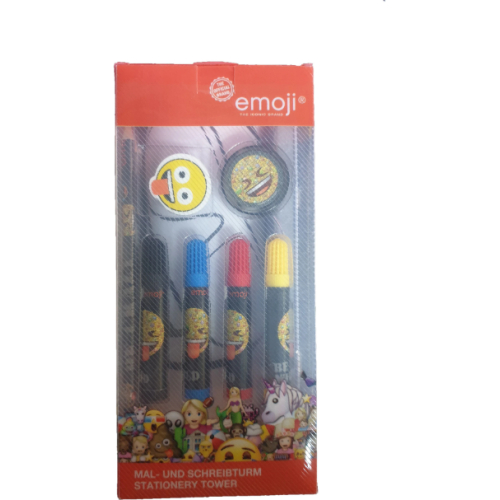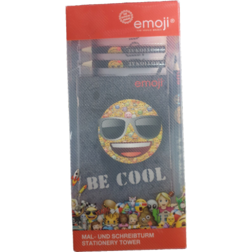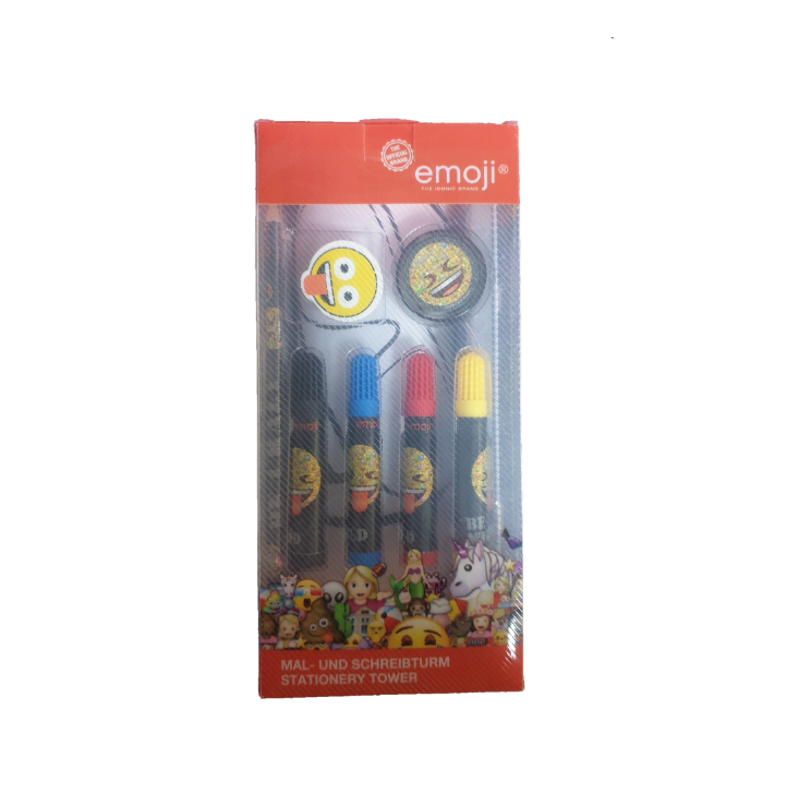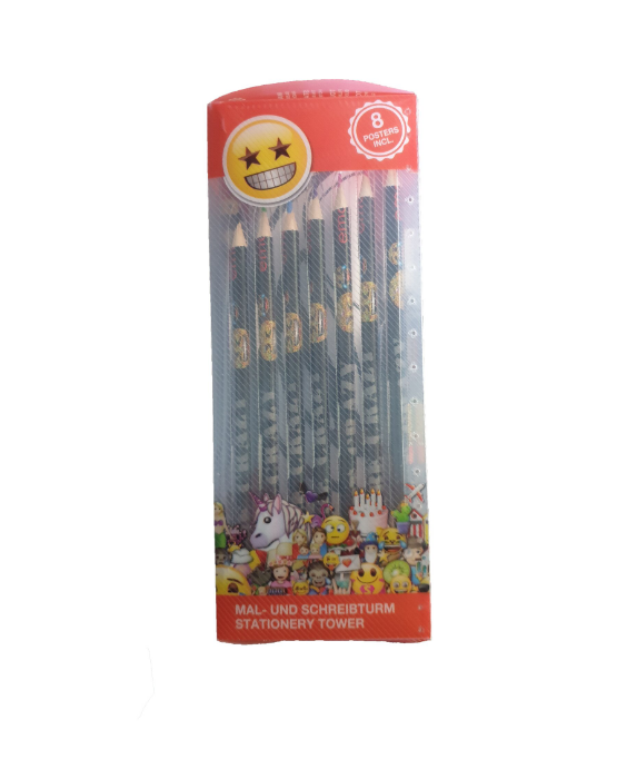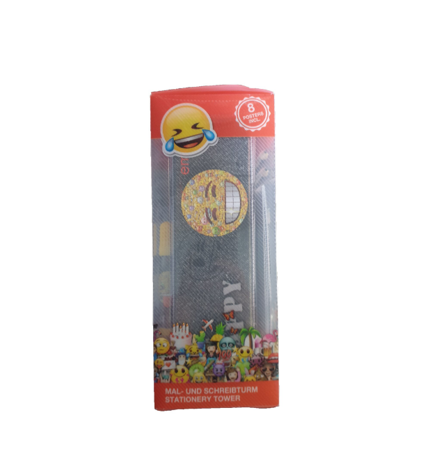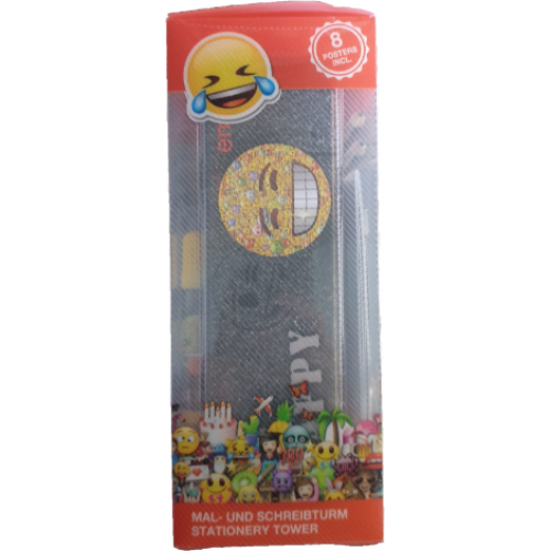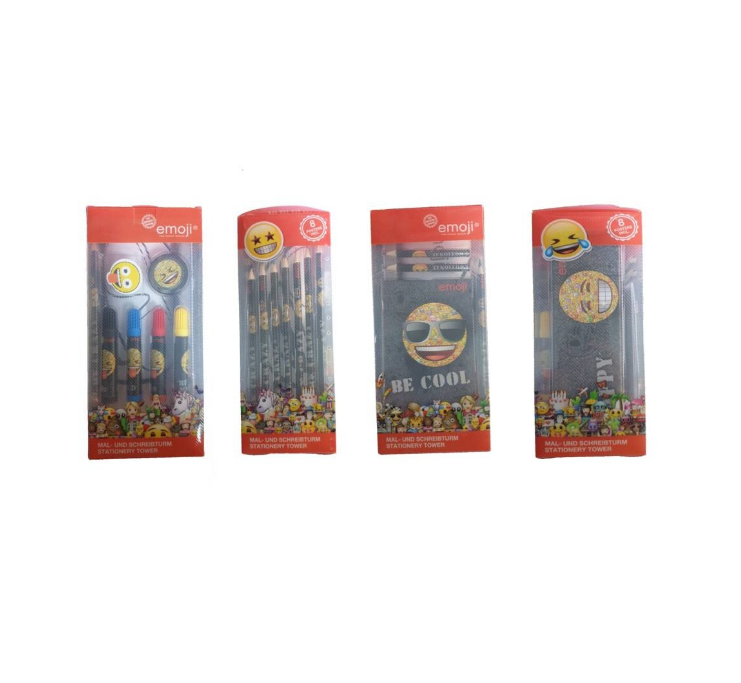 Set 25 piese desenat, carnetel, carioci, creioane, ascutitoare, radiera, postere, penar metal, Emoji