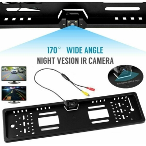 Aparatul video este dotat cu un cadru din plastic dreptunghiular negru, ce il puteti instala pe placuta de inmatriculare.
