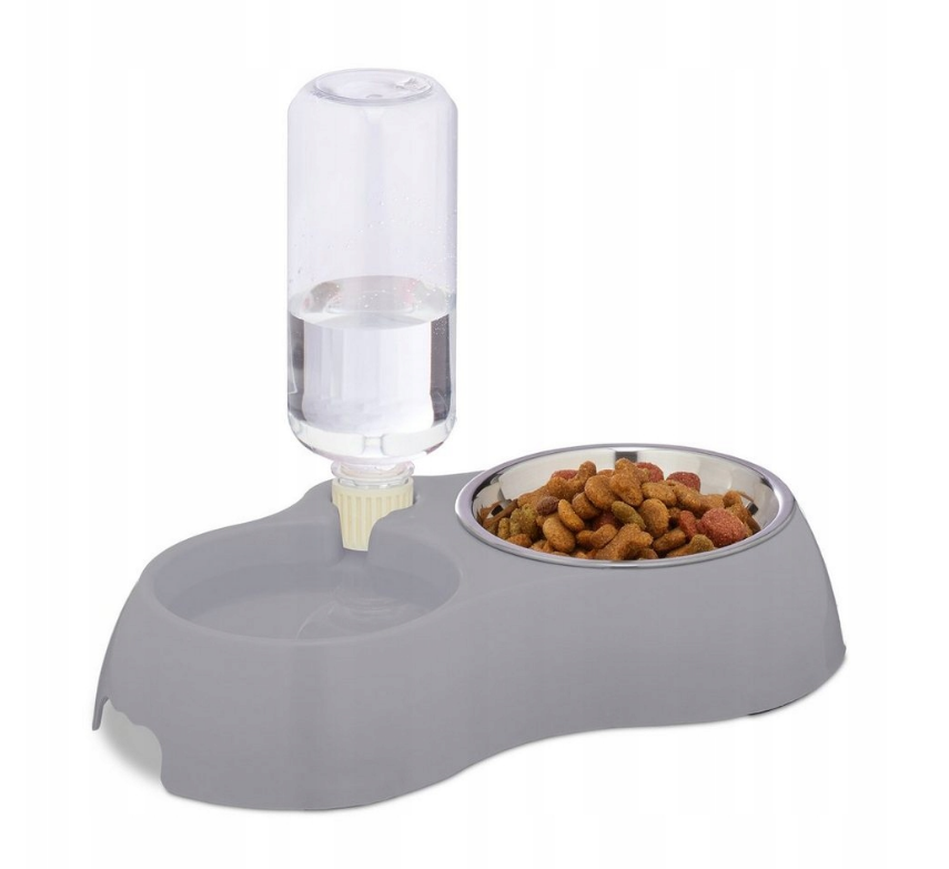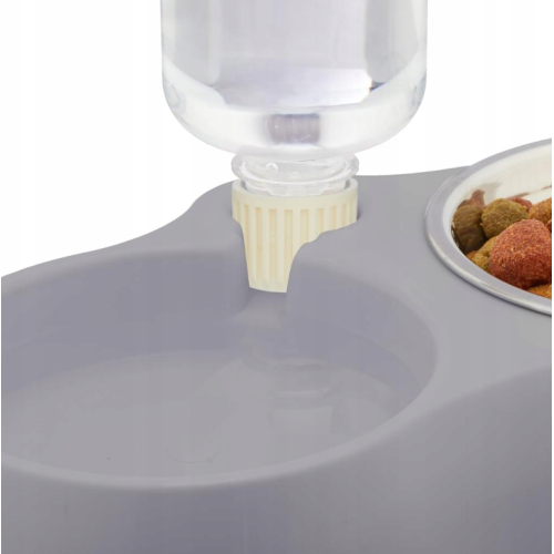 Bolul pentru mâncare oferă proviziile de bază perfecte pentru prietenul tău cu patru picioare. Puteți folosi un bol detașabil din oțel inoxidabil pentru alimente umede sau uscate. Sticla de băut asigură o aprovizionare constantă cu apă. Pune sticla umpluta cu capul in jos in suport, apa curge in vasul cu apa si ramane la o inaltime constanta. Datorită dimensiunii sale, castronul este perfect pentru câinii mai mici, dar și pentru pisici.