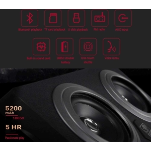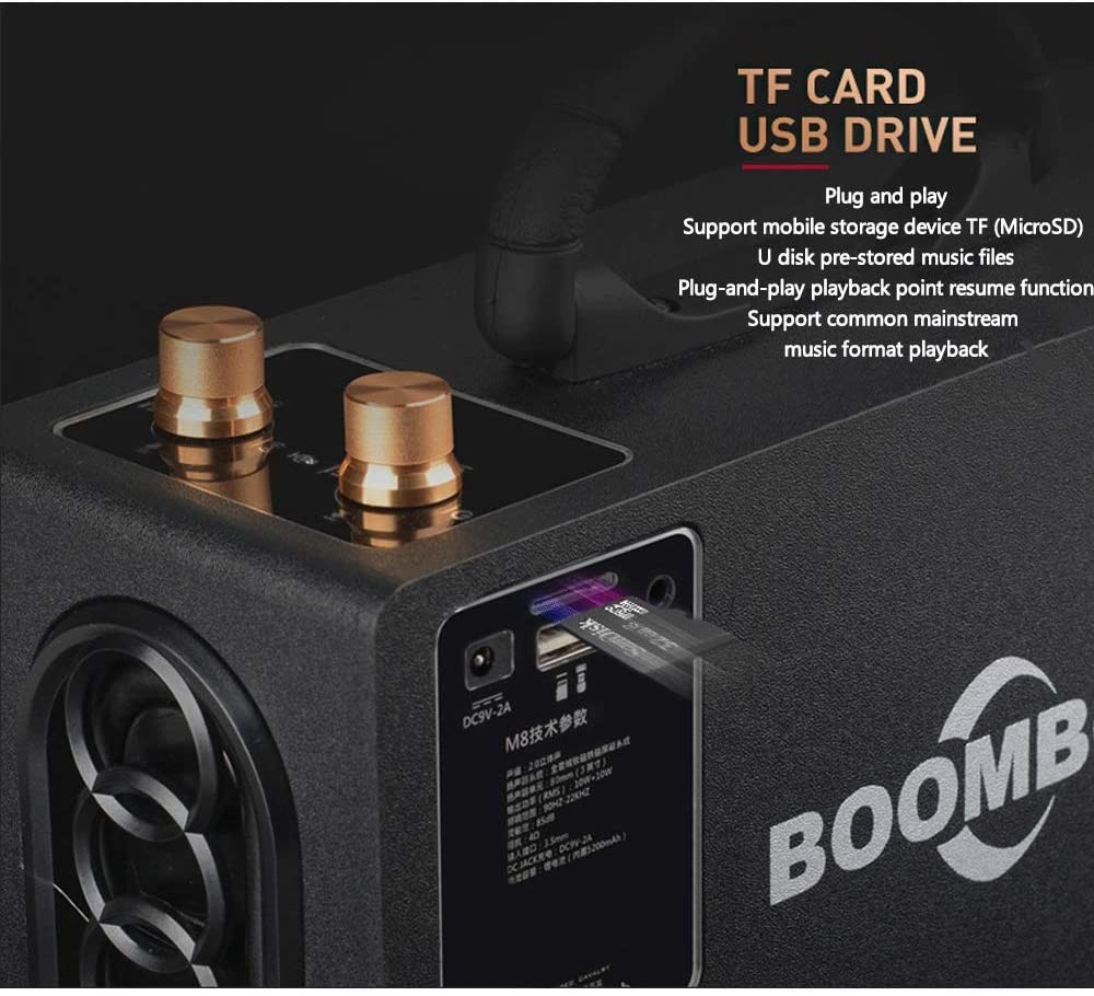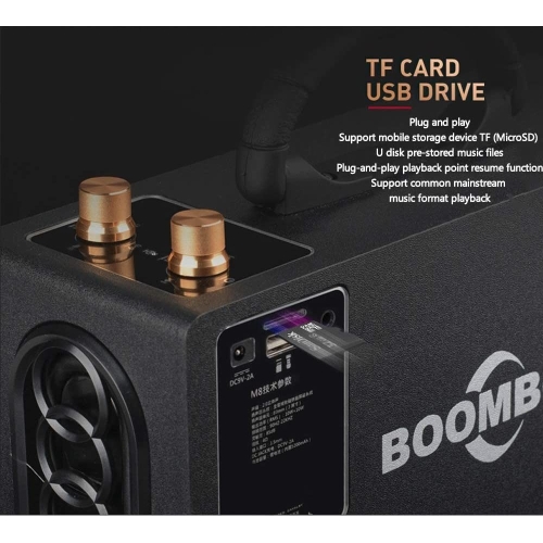 Boxa Wireless portabila, ce poate reda muzica prin intermediul unui transmitator wireless si/sau  bluetooth, hands-free, suport FM, MP3, Stick USB, Card de memorie.