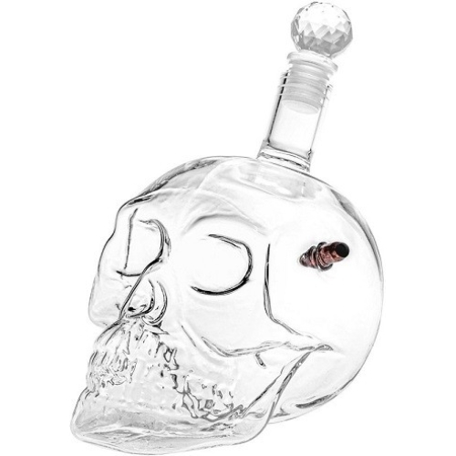 Decantor din sticla in forma de craniu, perfect pentru petreceri.