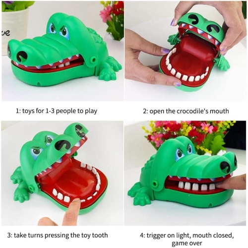 Jucaria crocodil este un joc hilar, care provoaca copii sa se ingrijeasca de dintele inflamat al crocodilului. Printr-o apasare pe dinte, crocodilul va scoate un zgomot daca acest dinte este inflamat. Daca ghiceste dintele corect, gura crocodilului ramane deschisa.