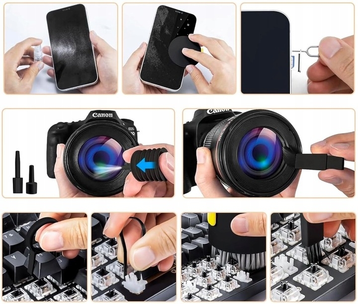 Setul este extrem de versatil și poate fi folosit pentru curățarea tuturor tipurilor de dispozitive electronice, atât pentru întreținerea regulată a elementelor exterioare, cât și pentru curățarea locurilor greu accesibile.