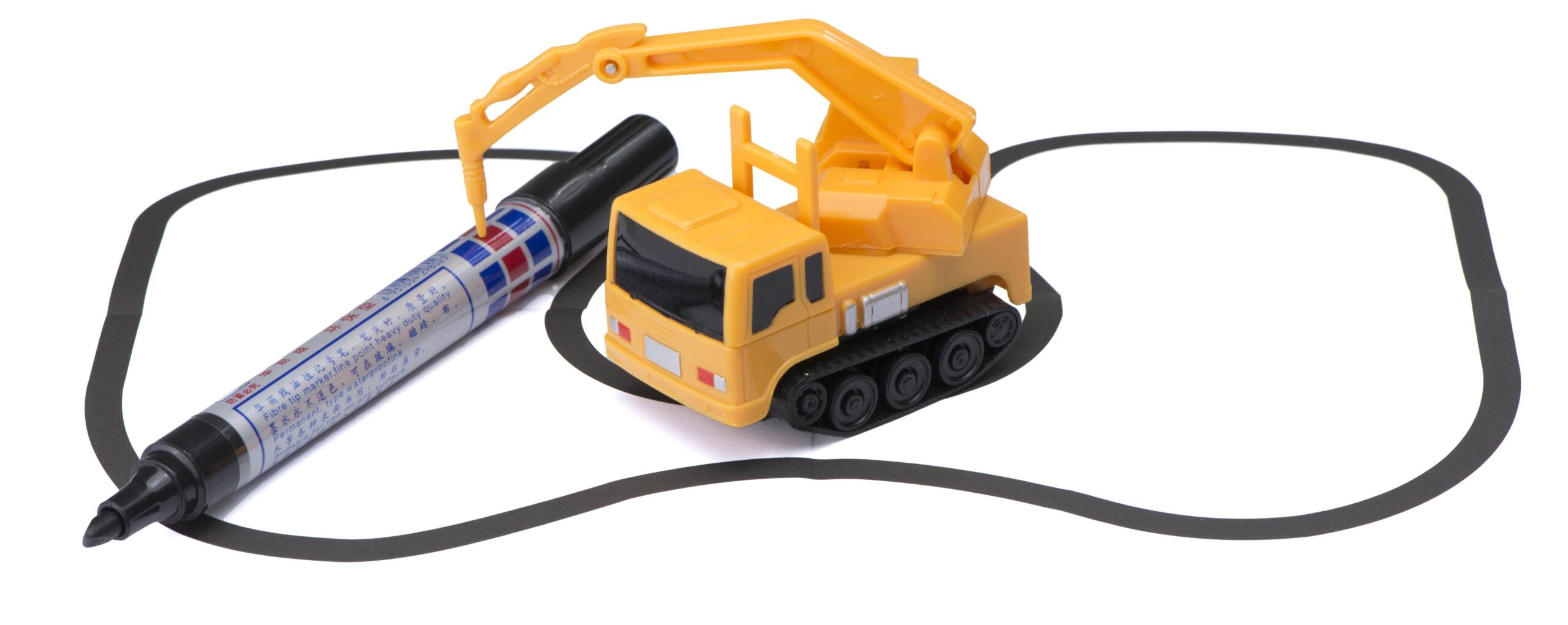 Masinuta de jucarie cu senile ce urmareste traseul desenat cu marker-ul.