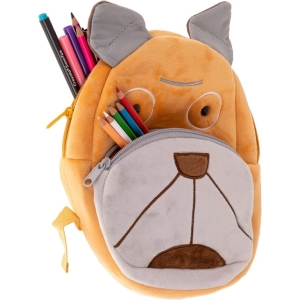 Un rucsac de pluș, cu o capacitate de aproximativ 3 litri în formă de câine prietenos.