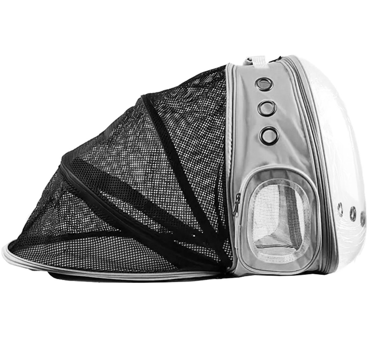 Cu un design fereastra complet transparenta ofera o vedere minunata pentru animalele de companie. S-ar putea sa le fie putin frica, dar odata ce se vor obisnui vor fi mai curioase despre lumea exterioara. Carcasa transparenta le ofera un sentiment de siguranta si confort. Un plus este si panza care se mareste in partea posterioara prin deschiderea unui fermoar, oferind astfel mai mult spatiu animalutului atunci cand ghiozdanul este la sol.