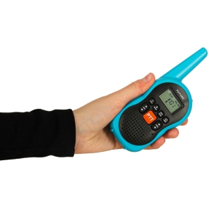 Acest set de două walkie-talkie permite comunicarea pe o distanță de până la 3 kilometri. Dispozitivele sunt dotate cu funcții practice, precum lanternă, 22 de frecvențe de transmisie, posibilitatea de a schimba tonul de apel și reglajul volumului. Designul compact și interfața simplă fac utilizarea lor foarte accesibilă. Alimentate de trei baterii AAA (neincluse), walkie-talkie-urile oferă o soluție convenabilă pentru comunicare în interior sau în timpul excursiilor de camping.