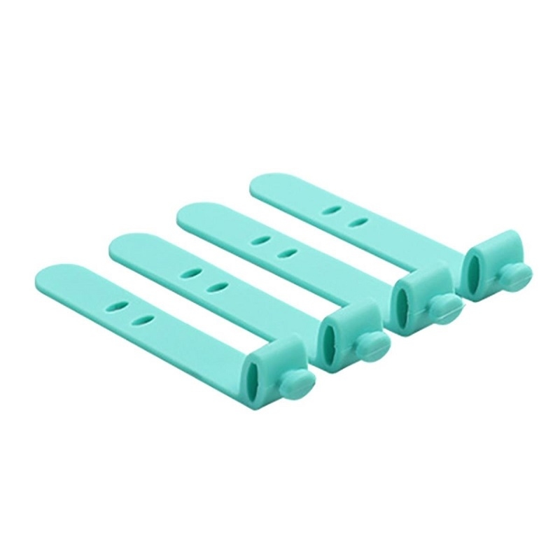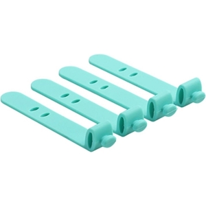 Un set de cleme din silicon pentru firele electrice. Patru organizatoare de cabluri cu o inchidere convenabila – un instrument extrem de util atunci cand organizati o incurcatura de fire (de exemplu, casti).