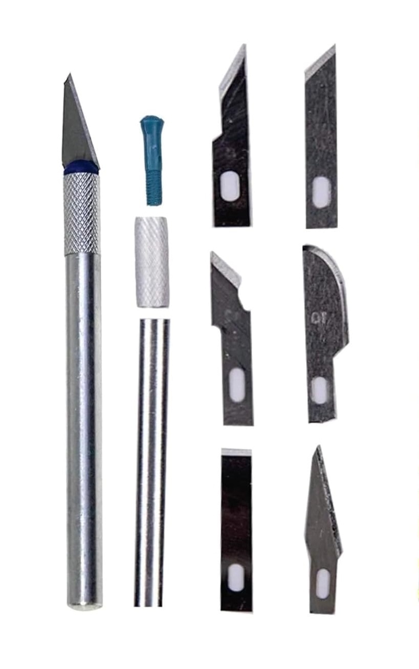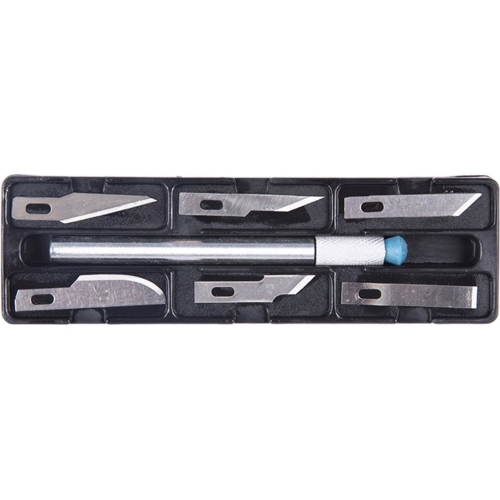 Acest set de cuțite este perfect pentru lucrări de tăiere precisă, fiind util pentru modelare, bricolaj și diverse proiecte creative. Proiectat ergonomic și ușor de utilizat, setul include lame de diferite forme pentru a satisface o gamă variată de necesități.