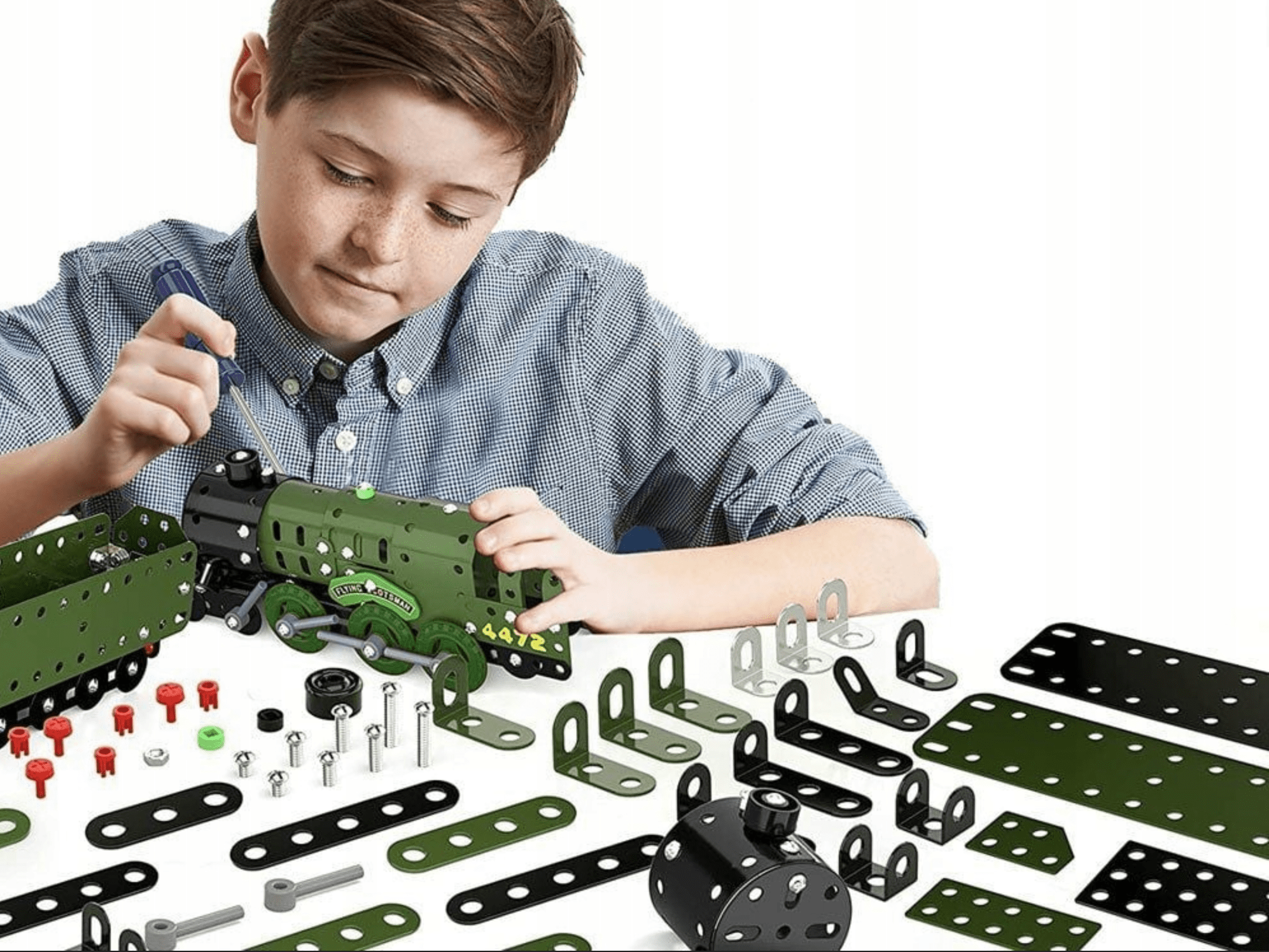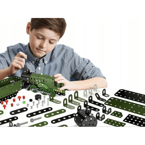 Set de constructie, Locomotiva, elemente metalice cu surub, 340 bucati, Gonga®