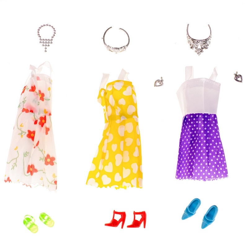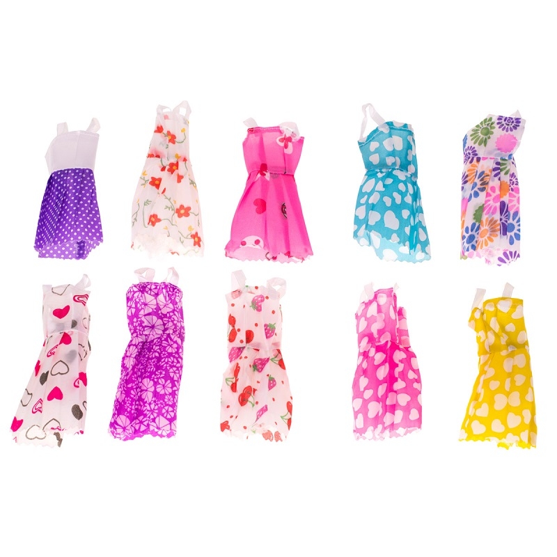 – 10 rochii pentru păpuși (lungime 13 cm),