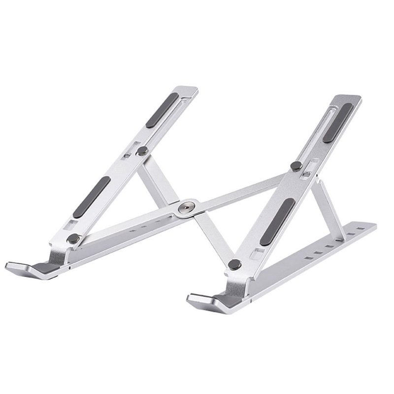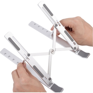 Suport pentru laptop pliabil din aluminiu. Se caracterizeaza printr-o constructie usoara si solida.