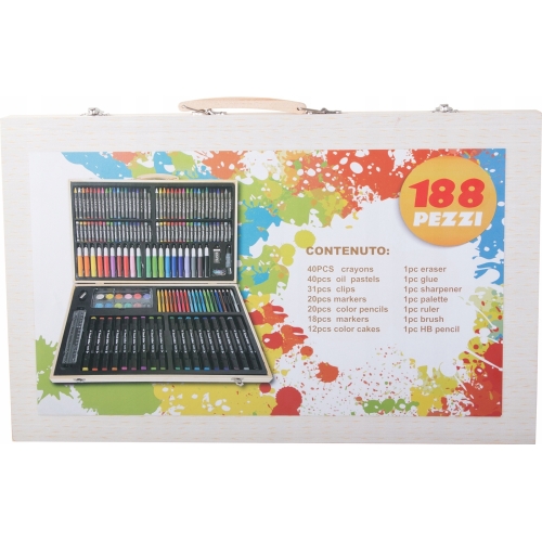 Trusa de pictura si desen, 188 piese, cutie depozitare lemn, Gonga®
